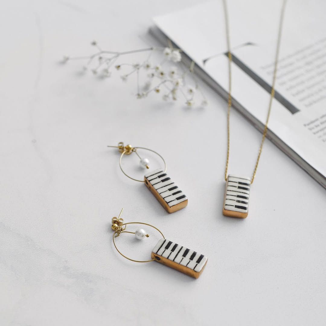 Add a touch of musical elegance to style with this handmade ceramic jewelry set.